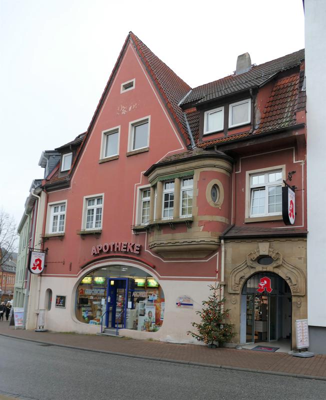 Das Gebäude erbaute 1911 der Idsteiner Kolonialwarenhändler Adolph Witt als Wohn- und Geschäftshaus. Entworfen wurde das Gebäude durch den Architekten und Kgl. Oberlehrer Franz Boeres von der Preußischen Baugewerkschule in Idstein. Sohn Adolf Witt betrieb hier eine Drogerie, seit 1978 werden die Geschäftsräume als Apotheke genutzt.