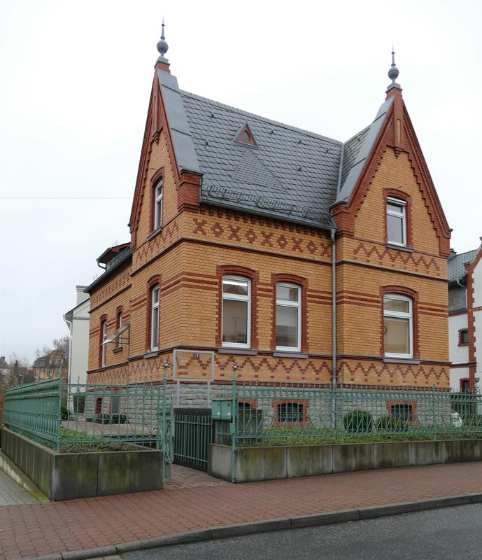 Das Gebäude wurde von Wilhelm Leichtfuß errichtet, der Bürgermeister in Idstein von 1888 bis 1919 war. Erbaut wurde es 1894, als Architekt zeichnete G. Vietor. Der aufwändig gestaltete Bau zeigt über einem hohen, rustizierten Natursteinsockel Backsteinfassaden in zweifarbiger Musterung. Prägend sind die hohen Dreiecksgiebel des steilen verschieferten Daches. Die Giebel sind in Backstein in der Art eines Hängewerkes gestaltet, das die Giebelspitze durchbricht und mit einem metallenen Kugelaufsatz abgeschlossen wird. Erhalten zudem die filigrane und aufwendig gestaltete Metalleinfriedung des Anwesens.