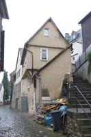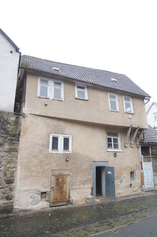 Das schmale Grundstück und die westliche Hanglage bedingen einen ungewöhnlichen Baukörper, der im Unter- und Mittelgeschoss aus Bruchstein gemauert, im Obergeschoss in Fachwerkbauweise errichtet wurde. Durch das an der nordöstlichen Gebäudeecke auskragende Obergeschoss entsteht insgesamt eine besondere straßenräumliche Wirkung. Nördlich schließt ein jüngerer Anbau, vermutlich ein Stall, an. Im 18. Jahrhundert erfolgte ein Umbau zu Wohnzwecken. Die vorherige Nutzung ist unklar, die Raumstruktur lässt auf eine öffentliche oder gewerbliche Nutzung schließen.