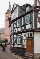 Zweigeschossiges, traufständiges Wohnhaus über fast dreieckigem, in der Straßenfront leicht abgeknicktem Grundriss am Übergang der Rosengasse zum Marktplatz. Obergeschoss mit nach außen zunehmendem Überstand. In der Gebäudemitte ein Giebelzwerchhaus, flankiert von zwei Gauben. Hohes Erdgeschoss, Eingang mit Sandsteinstufen und Oberlicht, Kellereingang mit Stichbogenschluss. Fachwerk des frühen 18. Jhs. mit späteren Veränderungen. Bestandteil der hochwertigen geschlossenen Zeile in der Rosengasse.