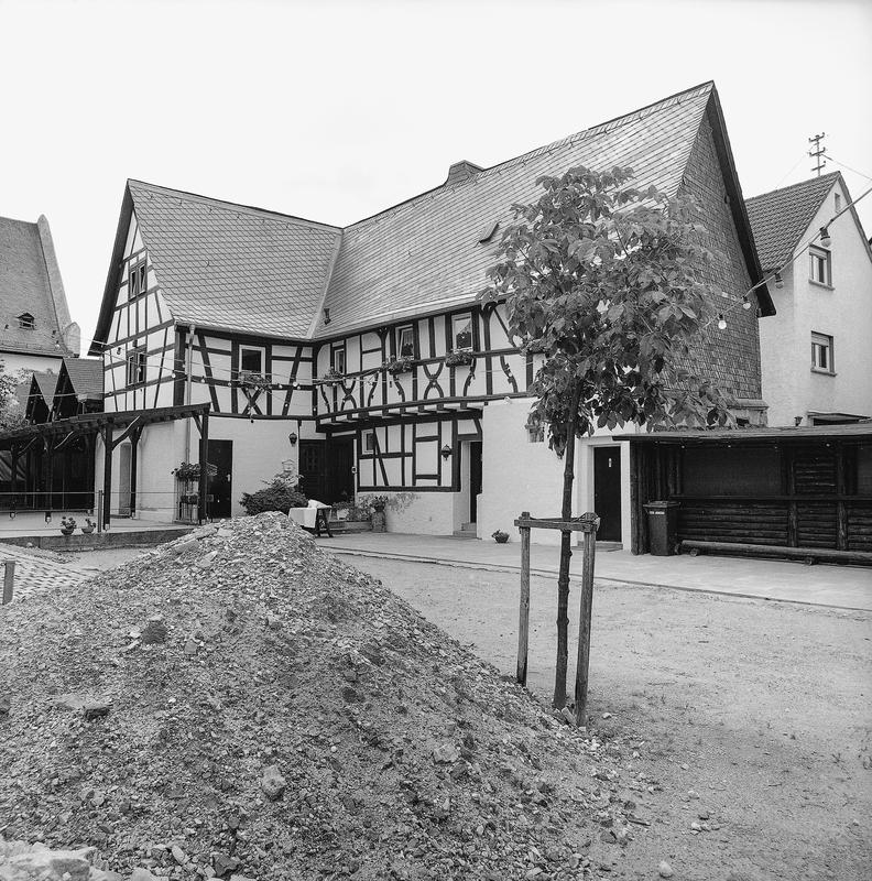 In der Literatur als Hofmannshaus (Wohnung des Hofverwalters) bezeichnetes, laut Überlieferung 1686 errichtetes Fachwerkwohnhaus aus zwei rechtwinklig zusammenstoßenden Flügeln im weiteren Burgbezirk westlich der Burg. Der auf der äußeren Mauer aufsitzende längere Gebäudetrakt des 17. Jhs. zeichnet sich durch reizvolle Zierformen in der Obergeschossbrüstung zur Hofseite aus. Die weite Auskragung und die durchgehende Brüstung weisen hier auf einen zunächst offenen, erst im 18. Jh. geschlossenen Laubengang hin, eine im Rheingau seltene Bauform. Das Erdgeschoss diente früher Wirtschaftszwecken, vielleicht als Brauhaus. An der nördlichen, jetzt verschieferten Giebelseite ist nach älterer Zeichnung ebenfalls reiche Fachwerkzier vorhanden. Die Traufseite zur Paulinenstraße besteht ganz aus konstruktivem Fachwerk über der durchlaufenden Bruchsteinmauer. Der rechtwinklig in den Hof vorspringende Anbau wurde im 18. Jh. angefügt.
