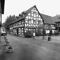 Dreizoniges Fachwerkwohnhaus des 17. Jhs. (angebl. 1663). Traufseitig schlichte Konstruktion mit Mannfiguren im Obergeschoss. Die zum Burgplatz orientierte Giebelfront enthält einige geschwungene, genaste Streben als Zierelemente. Eckpfosten mit geschnitztem Stab in späten Renaissanceformen. Die Fensterstellung wurde im 18. Jh. verändert, gleichzeitig das Haus verputzt. Die profilierte Türumrahmung ist eine Zutat der Neuzeit. Das Haus wirkt als prägendes Element sowohl der Burgstraße wie auch des Burgplatzes.