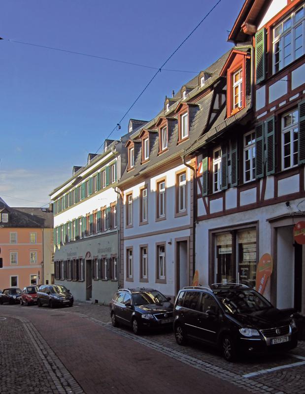 Durch ausgewogene Proportionen reizvolles massives Wohnhaus des 18. Jhs. Vierachsige, durch Gurtgesims und gequaderte Eckpilaster harmonisch gegliederte Putzfassade, Mansarddach mit zwei Gaubenreihen. Fenster mit schlichten Sandsteingewänden und Brüstungsgittern. Außermittiger Eingang mit nachträglich nach innen gezogener Freitreppe. Angrenzend an das ehemalige Rathaus bildet das traufständige Wohnhaus einen Bestandteil der geschlossenen Bauzeile. Ein 1879 projektiertes zugehöriges Kelterhaus im Hof ist nicht erhalten.