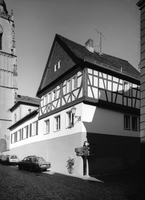 Auf der Kirchhofterrasse gelegener winkelförmiger Bau auf hohem, massivem, teilweise aus der Kirchhofmauer gebildetem Untergeschoss, darauf ein vorkragendes Fachwerk-Obergeschoss mit hohem Satteldach. Der ursprüngliche kleine Firstwalm auf Konsole ist nicht erhalten. Der spitzbogige ehemalige Eingang (heute Fenster) an der Hofseite ist ein Relikt der Erbauungszeit um 1500. Das giebelseitige Fachwerk zur Rosengasse zeigt Formen des späten 16. Jhs. mit geschwungenen Streben und geschnitzten Eckstäben. Die übrigen Fachwerkwände wurden erneuert bzw. in neuem Holz vorgeblendet. Das Haus ist ein stadtgeschichtlich wie auch städtebaulich bedeutender Bestandteil des unmittelbaren Kirchenumfeldes.