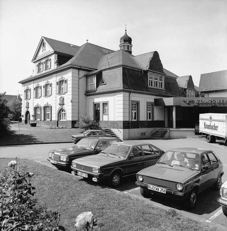 Im Jahr 1900 erwarb der preußische Staat das rund 20 ha große Wilhelmj'sche Weingut, das den Grundstock des Staatsweingutes Rauenthal bildete. Für die Verarbeitung des dortigen Lesegutes errichtete die Domänenverwaltung 1910/11 das repräsentative Kellereigebäude am nördlichen Ortsrand von Eltville. 1922/25 (Architekt: Grebenstein, Regierungsbaurat, Assmannshausen) und 1935/37 Erweiterungen der Domänen-Kellerei. 1950/51 Errichtung eines neuen Verwaltungsgebäudes, 1976 Bau eines Hochregalflaschenlagers.