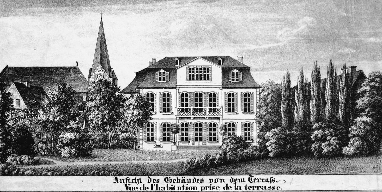 Adeliges Weingut des 18. Jhs. Eigentümer im 19. Jh. waren 1822 Freiherr von Zwierlein, danach die Gebrüder Mappes und Heinrich Baron von Mappes, Weinhändler aus Mainz. Nach einer Beschreibung um 1838 enthielt das Gebäude pro Geschoss sechs Zimmer und einen Salon; dazu gehörten ein Haus für die Dienerschaft, ein Garten mit Brunnen, ein Hof mit Hühnerhof, Stallung für sechs Pferde, Kuhstall, drei Remisen, ein Obst- und ein Traubengarten sowie ein Gewölbekeller für 80 rheinische Stückfässer. Weitere Besitzer waren 1840 Baron von Bethmann, 1861 Le Coq, Potsdam, 1883 von Derschau, 1886 Prinz Albrecht von Preußen. Zum Gutsbesitz gehörten ca. 30 Morgen Grund, davon ca. 20 Morgen Weinberge. 1918 ging der Besitz an Hermann Wachendorff, Direktor der Chemischen Werke Koepp in Oestrich.