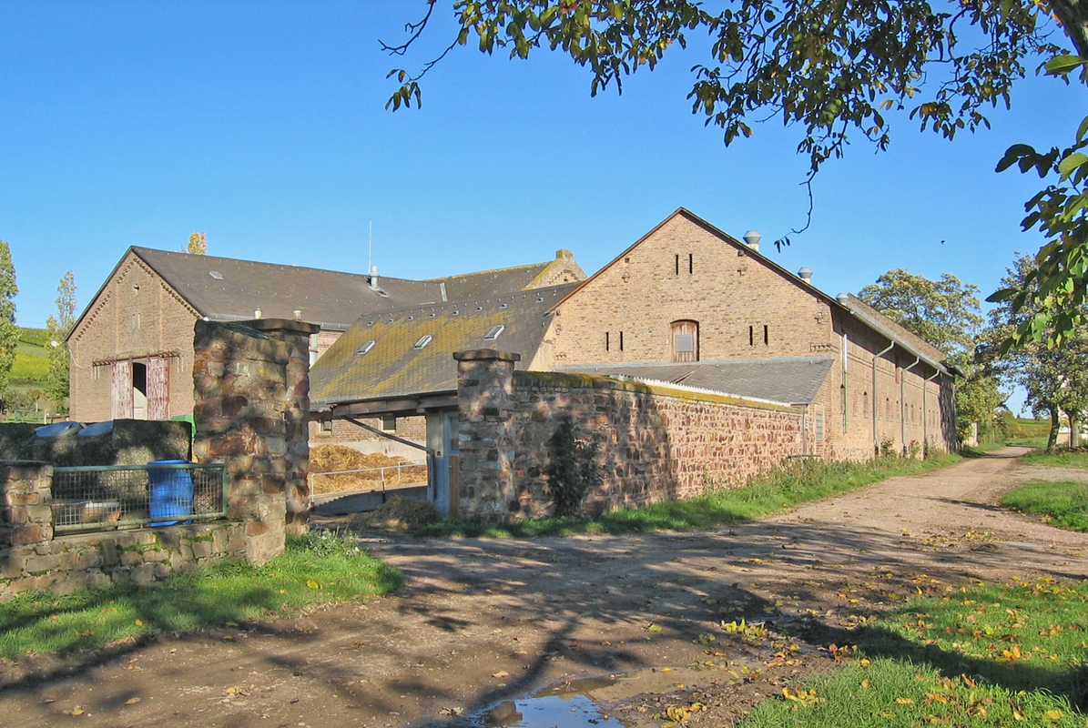 Das Wohnhaus, ein schlichter, neuklassizistischer Putzbau mit Walmdächern, Eckquaderungen und Stichbogenfenstern entstand aus der Erweiterung eines ersten kubischen Baukörpers „als solides Krankengebäude mit 70 Betten". Scheune und langgestreckte Stallung, 1890/91 aus Backstein mit Satteldächern errichtet, bilden den Kernbereich des Wirtschaftshofes, in der Folgezeit vermehrt um einige Wohn- und Zweckbauten und von einer Mauer umgeben.