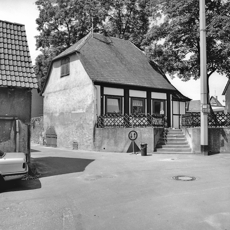 Kleines ehemaliges Wirtschaftsgebäude, vielleicht Kelterhaus, eingeschossig auf etwa quadratischem Grundriss mit hohem Kellergeschoss, rundbogigem Kellereingang zur Straße und verschiefertem Krüppelwalmdach. Die massive Giebelwand enthält nur im Dachgeschoss eine Öffnung als Fenster oder Ladeluke. Die ursprüngliche Fachwerkkonstruktion wurde nach Umbau zu Wohnzwecken verändert und das Gebäude durch einen größeren Anbau erweitert. Erhaltenswert als selten erhaltener Bautyp des 18. Jhs.