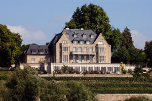 Großzügige, repräsentative, formal strenge Villa im „englischen Stil" aus steinsichtigem Bruchsteinmauerwerk mit Schieferdächern. Zweigeschossiger, symmetrischer Hauptbau mit eingeschossigem Anbau nach Westen. Über einer an der Hangkante hochaufragenden Terrasse erheben sich an der rheinseitigen Hauptfront zwei Giebel mit zweigeschossigen Erkern, dem Mitteltrakt sind ein breiter Balkon bzw. ein Dachaustritt über der Traufe vorgelagert. Alle Brüstungen bestehen aus ornamental durchbrochenen Werksteinteilen, die dem Bau zusätzliche Massivität verleihen. (Balkon verändert, Brüstungen teilweise durch moderne Betonfertigteile ersetzt). Die Innenausstattung (Holzvertäfelung, Stuck) teilweise erhalten. Beispielhaft zeigt der späte Bau des durch seine Berliner Landhäuser bekanntgewordenen Architekten und Mitbegründers des Werkbundes „die Verbindung von Natürlichkeit und Zweckmäßigkeit", wie er sie im englischen Landhaus verwirklicht sah.