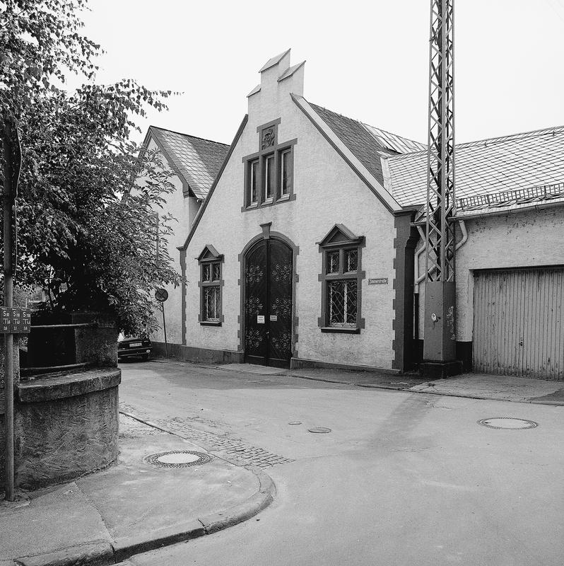 Die Kelterhalle wurde, laut Baudatum im Giebel, 1896 in dem ursprünglich zum Hof Heimes gehörigen Wirtschaftshof errichtet. Zur Zimmerstraße orientierter Schildgiebel mit historistischem Treppenmotiv an der Spitze. Symmetrisch gestaltete Putzfassade mit Eckquaderung, die mittige Einfahrt und die Fenster durch aufwendige Sandsteinrahmungen hervorgehoben, das Holztor durch schmiedeeiserne Beschläge geziert. Zweckbau mit repräsentativem Anspruch entsprechend der Industriearchitektur des 19. und frühen 20. Jhs.