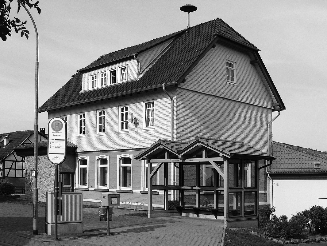 Das Bernshäuser Schulhaus wurde 1899/1900 erbaut. Das Erdgeschoss, errichtet aus Backstein mit farbig abgesetzten Gliederungen, heute mit dünnem Putz versehen, enthielt den Schulsaal, seine profilsteingerahmten Öffnungen schließen segmentbogig ab. Das etwas auskragende Obergeschoss mit der ursprünglichen Lehrerwohnung ist verschindelt, den Bau deckt ein Krüppelwalmdach mit breiter Schleppgaube. Die Erweiterung zum Dorfgemeinschaftshaus erfolgte 1982 und verunklärt die alte Situation wenig.