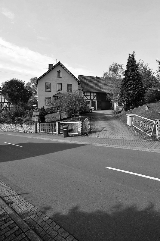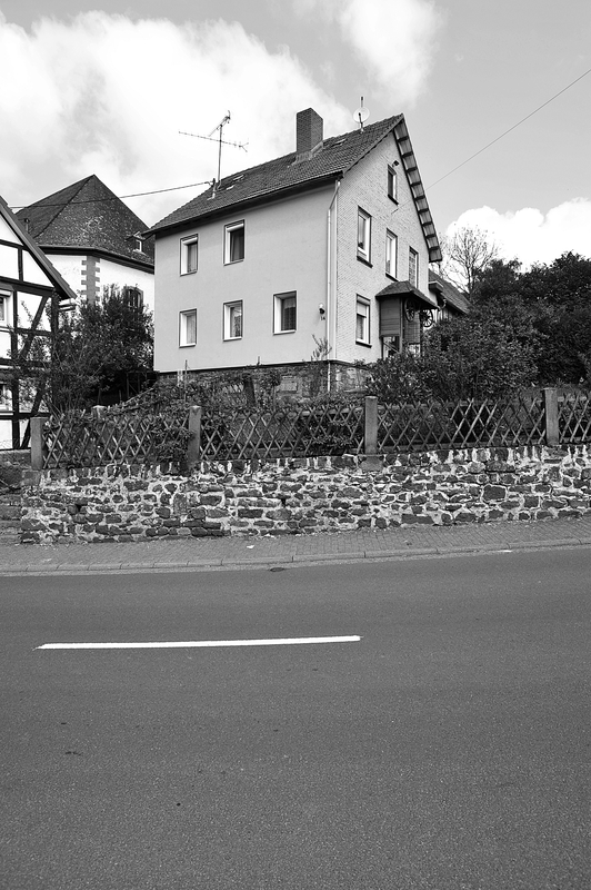 Der zweigeschossige, über markantem Basaltsockel verputzte beziehungsweise mit Schindeln verkleidete Rechteckbau trägt ein verhältnismäßig flaches Satteldach und fällt im dörflichen Kontext durch seine Kubatur wie durch die in jeweils drei Achsen angeordneten großen Fenster auf. Angeblich 1830 an den Kirchhof angrenzend erbaut, handelt es sich um ein ehemaliges Schulhaus, das nach dem zentral im Dorf errichteten Neubau (Hoherodskopfstraße 38) privatisiert wurde. Erwähnenswert ist am zugeordneten Wirtschaftstrakt der Rest eines Fachwerkgefüges mit einfach verriegelten Mann-Figuren.