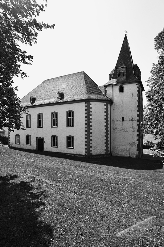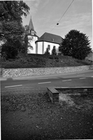 Die am nördlichen Ortsrand hoch gelegene Kirche gehört zu den ältesten im Hohen Vogelsberg. Ihre Bedeutung vermittelt die Abbildung auf einem Stich von Wilhelm Dillich. Von dem älteren, über kreuzförmigem Grundriss errichteten Bau, den Dillich 1591 darstellte, blieb jedoch nur der gedrungene jetzige Westturm des späten Mittelalters mit seinem wahrscheinlich noch aus der Bauzeit stammenden, allerdings später teilweise erneuerten Dach erhalten. Unter der Traufe des Turms sitzen kleine Spitzbogenluken, der abschließende vierseitige Spitzhelm hat vier markante Zwerchhäuser mit den Schallöffnungen des schon immer im ersten Dachgeschoss untergebrachten Glockenstuhls. Der Turm hat ein jüngeres Außenportal mit reich profiliertem Gewände und gesprengtem Dreiecksgiebel, datiert 1763. Neben dem Portal ist der Rest eines Weihwasserbeckens sichtbar (sehr ähnlich dem am ehemaligen Chorturm der Schlitzer Stadtkirche). Die mit einer Längstonne gewölbte Turmhalle öffnet sich zum Kirchenraum mittels eines großen Rundbogenportals mit kräftigen Kämpfern. Das der Kirchengemeinde entsprechend große Schiff wurde 1762–65 nach Plänen von Lorenz Friedrich Müller errichtet. Es besteht als längsgerichteter Saalbau mit abgeschrägten Ecken und hohem Walmdach; Letzteres wurde zusammen mit der Saaldecke 1907 erneuert. Zweigeschossig und in fünf Achsen angeordnete Segmentbogenfenster sowie je ein Portal öffnen die Längsseiten. Das südliche mit der Jahreszahl 1762 ähnelt dem am Turm, wird aber durch das von Löwen gehaltene hessische Wappen hervorgehoben.