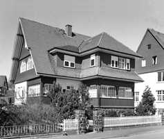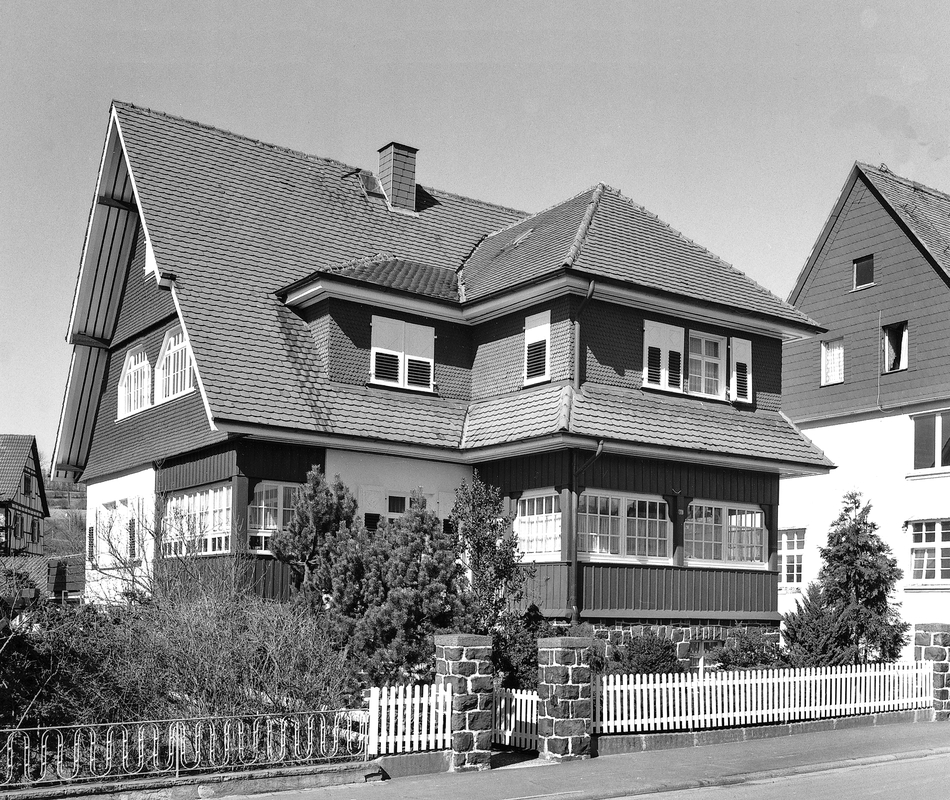 Villa in einem sachlich-strengen Heimatstil, nach den Bauakten 1930 nach Entwurf von Theodor Wetzler errichtet. Sie erhebt sich über einem Basaltsockel als eingeschossiger verputzter Massivbau, erweitert durch hölzerne Loggien beziehungsweise Wintergärten. An der zur Straße gewandten Traufseite besteht ein breiter erkerartiger und verglaster (ehemals vielleicht offener) Vorbau aus Holz, darüber ist ein Geschoss ausgebaut und mit Fußwalm und Walmdach versehen. Dieser Ausbau ist wie die Giebel verschindelt, das biberschwanzgedeckte Dach über den Giebeln gestuft vorgezogen. Hinter dem Haus blieb das bereits früher entstandene und den Stil vorgebende Ökonomiegebäude erhalten.