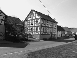 Bedeutendes Anwesen in der Form eines Parallelhofs. Traufständig an der Straße ist das mächtige Wohnhaus über hohem Kellersockel 1893/94 nach einem Brand wieder als Fachwerkhaus in konstruktivem Gefüge neu errichtet worden. Die Westwand entstand massiv. Anspruchsvoll sind die zweiflügelige Haustür der Bauzeit über zweiläufiger Freitreppe und der beinahe symmetrische Fassadenaufriss, wobei in der rechten Zone schräg eingesetzte Riegel auffallen, wie sie auch andere Gebäude im Dorf aufweisen. Rückwärts steht firstparallel zum Wohnhaus, in dem ein Gasthaus mit Saal untergebracht war, der große Wirtschaftstrakt.