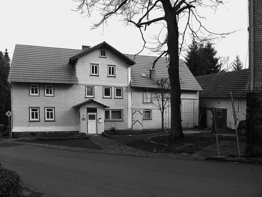 Große, vor der Mitte des 19. Jahrhunderts errichtete Hofanlage. Sie besteht aus einem giebelständigen Trakt in der Art eines Einhofs, der, ohne Geschossvorkragungen anzudeuten, mit Schindeln verkleidet ist und einen Stall aus Backstein einbezieht. 1897 erfolgte die Erweiterung durch große Zwerchhäuser, die sich gestalterisch mit ihrer Dachneigung und den nur hier erhaltenen kleinen Konsolen unter den Fenstern als Elemente der gleichzeitigen, eher städtisch geprägten Ulrichsteiner Architektur jener Zeit vorstellen. Ein separat in rechtem Winkel errichteter, niedrigerer Ökonomiebau mit aus Basalt gemauertem Stall schließt die Hofreite ab.