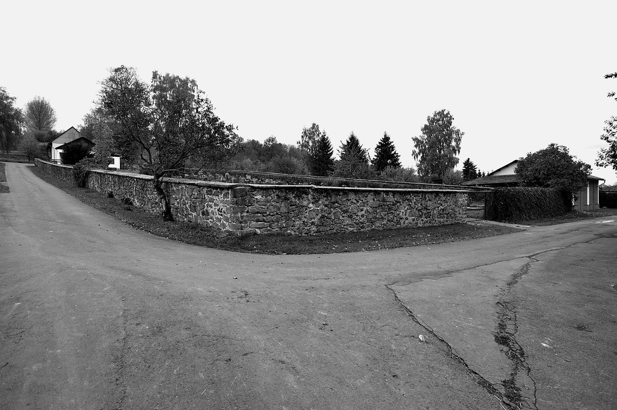 Das längsrechteckige Grundstück des Friedhofs, der über einen Fußpfad vom Grundweg her zu erreichen ist, wird von einer landschaftstypischen Feldsteinmauer, wohl aus dem 19. Jahrhundert stammend, eingefasst. Sie ist Kulturdenkmal aus geschichtlichen Gründen.