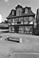 Der kleine, im rechten unteren Eckständer auf 1671 datierte Fachwerkbau erhebt sich dort, wo der Steinweg von der hier platzartig erweiterten Günthergasse abzweigt. Das Fachwerk zeigt besonders zur Güntergasse hin Schmuckelemente: an den Eckständern glatte Säulen, die mit doppelten Voluten abschließen. Stockschwelle und -rähm werden durch Konsolfriese hervorgehoben, darunter beziehungsweise darüber sind die Füllhölzer mit Taustäben versehen. Während das Obergeschoss mit Männern ohne Halsriegel verstrebt ist, zeigt das Erdgeschoss eine jüngere Konstruktionsart, die eine Erneuerung des frühen 19. Jahrhunderts erkennen lässt. Aus dieser Zeit stammen wohl auch das Mansarddach und die Tür mit ihren klassizistischen Gestaltungselementen. Hinsichtlich der Entwicklungsgeschichte der Schmuckformen ist von Interesse, dass einige der Voluten an den Eckständern nachgeschnitzt wurden und nun als Rocailles aufgefasst sind.