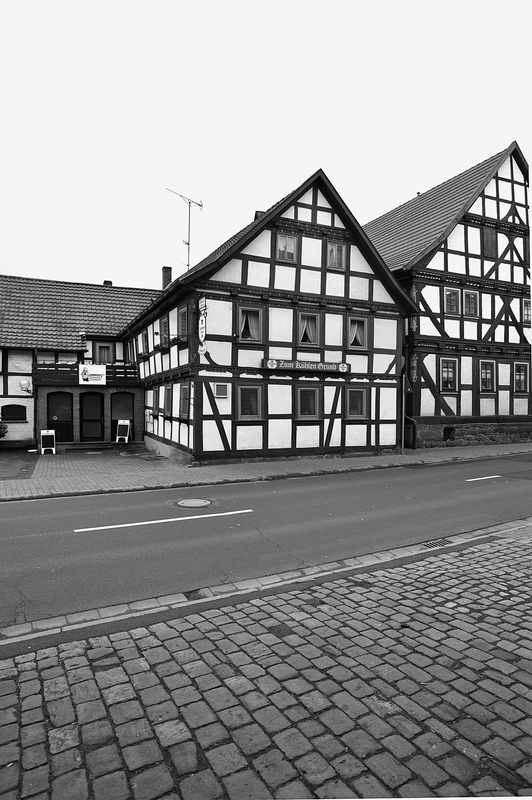 Das giebelständige Fachwerkhaus stammt im Kern aus der Zeit um 1620. Darauf deutet die markante Ausgestaltung der Quergebälke mit zweifachen Taubändern und die säulenartige, mit doppelten Voluten und Waffelmuster versehene Auszierung der Eckständer hin. Das sehr regelmäßige, einfach verriegelte Gefüge wurde jedoch nach der Mitte des 19. Jahrhunderts insbesondere an der Straßenseite teilweise erneuert; hier kommen dezente "gotische" Fußstreben in der Art von Ritgens, also vielleicht von Adalbert Schneller entworfen, vor. Das Haus ist von orts- und baugeschichtlicher sowie städtebaulicher Bedeutung.