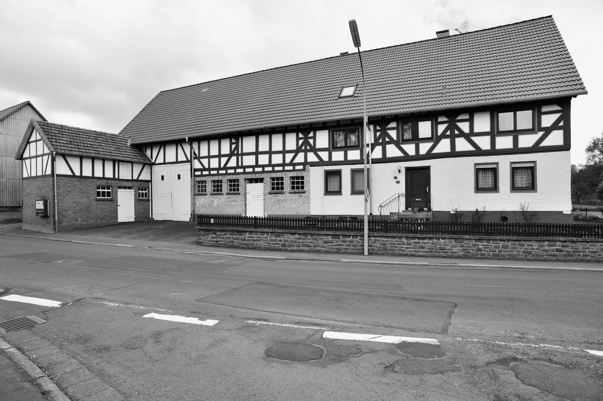 Die große traufständige Hofanlage leitet mit ihrer zur Straßenbiegung exponierten Giebelseite den relativ gut erhaltenen Abschnitt des Dorfs von Osten her ein. Das Anwesen, dessen Wohnteil im unteren Geschoss nach Vogelsberger Art verschindelt ist, entstand im späten 18. Jahrhundert als großer Einhof. Seine Gliederung in fünf Zonen wird durch Mann-Figuren mit kurzen Halsriegeln angezeigt. Eine Erweiterung durch eine Tenne und einen im Winkel angebauten Schweinestall stört das Bild unwesentlich. Der Hof ist Kulturdenkmal aus geschichtlichen und städtebaulichen Gründen.