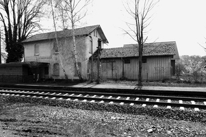 1873 eingerichtete Haltestelle an der 1871 fertiggestellten Bahnlinie Fulda-Gießen. Das Stationsgebäude ist ein schlichter, zweigeschossiger Rechteckbau aus weißen Klinkern unter flachem Satteldach. Die Gewände der hohen segmentbogigen Öffnungen werden durch Formsteine und Verdachung hervorgehoben. An das Stationsgebäude schließt sich der frühere Güterschuppen als einfache Holzkonstruktion an. Der Bahnhof Angersbach ist aus verkehrs- und ortsgeschichtlichen Gründen Kulturdenkmal.
