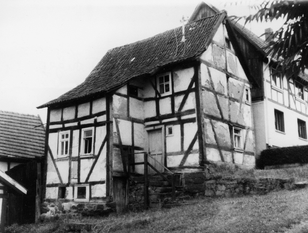 Hintersiedleranwesen, kaum vor dem 19. Jahrhundert in typischer Ortsrandlage als schlichter konstruktiver Fachwerkbau entstanden. Das sparsame Gefüge kommt mit wenigen Ständern, teilweise geschosshohen Streben und einfacher Verriegelung aus. Der zweigeschossige Bau, der Wohnen, Arbeiten, Speicher und Stall Raum bot, ist an seiner Traufseite durch einen anderthalbgeschossigen Anbau erweitert. Kulturdenkmal aus sozial- bau- und ortsgeschichtlichen Gründen.