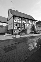 Kleiner Streckhof über hohem Sockel, gegen Ende des 18. Jahrhunderts als Doppelhaus mit mittlerem, beiden Parteien dienenden Tennentrakt und Ställen im Kellersockel errichtet. Eine Frakturinschrift in der Stockschwelle ist nicht mehr lesbar. Das Erdgeschoss des rechten Wohnteils wurde später als Stallzone umgenutzt: Eine Umbaumaßnahme scheint in feiner Fakturschrift über dem linken Kellerzugang dokumentiert: "Erbaut Kaßpar Keller 1861". Das Fachwerkgefüge weist Mann-Figuren in ihrer späten Form ohne Kopfwinkelhölzer auf, die Geschosstrennung ist noch betont und mit abgerundetem Quergebälk versehen. Das Haus ist Kulturdenkmal aus sozial- und wirtschaftsgeschichtlichen sowie städtebaulichen Gründen.