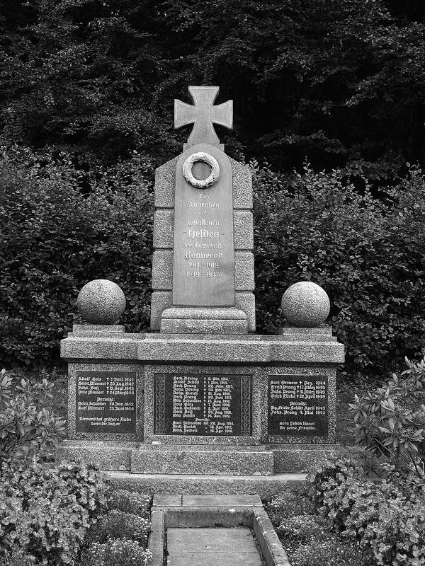Der Friedhof liegt steil am Hang südöstlich des Dorfs. Von geschichtlichem Belang ist dort das Gefallenendenkmal. Es ist als genutete Stele auf dreiteiligem Postament ausgebildet; das Material ist im Wesentlichen gestockter Granit. Die Stele trägt ein "Eisernes Kreuz", die Vorderseite zeigt einen Lorbeerkranz und die nach dem Zweiten Weltkrieg ergänzte Widmungsinschrift. Sie wird von Kugeln flankiert. Die Tafeln mit den Namen der Gefallenen sind in das Postament eingesetzt. Das Denkmal stammt wohl von der Firma Jost in Bermuthshain.