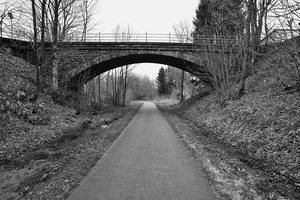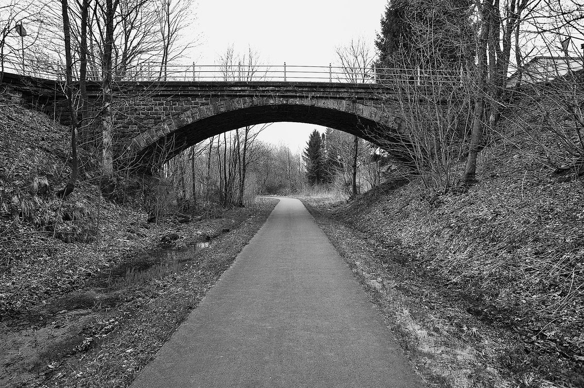 Unmittelbar östlich des Dorfs führt eine elegante Bogenbrücke über die in einer künstlichen Schlucht geführte ehemalige Bahnstrecke, die jetzt als touristischer Radweg genutzt wird. Sichtbare Baumaterialien sind Basalthaustein und bossierte Sandsteinquader, das eiserne Brückengeländer aus der Bauzeit (1906) blieb erhalten. Die Brücke ist Kulturdenkmal aus bau- und verkehrsgeschichtlichen Gründen.