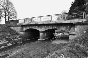 Die zweibogige, elegante Brücke aus Sandsteinquadern entstand nach der inschriftlichen Datierung 1843. Sie gehört zur damals erbauten Provinzialstraße von Herbstein nach Steinau. Die flach entwickelten Bogen ruhen auf abgerundetem Mittelpfeiler beziehungsweise entsprechend gestalteten Widerlagern, die jeweils oben mit umlaufenden Profilen abschließen. Unter der (erneuerten) Fahrbahn fasst ein kräftiges Gesims die Konstruktion zusammen. Kulturdenkmal aus verkehrs-, bau- und ortsgeschichtlichen Gründen.