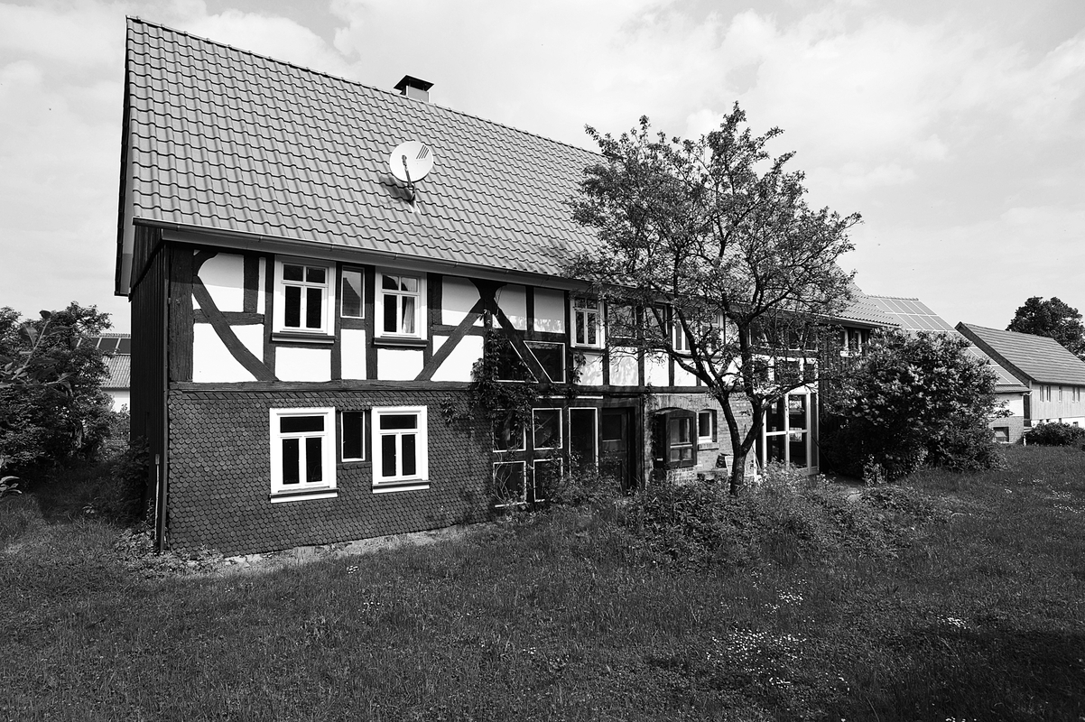 Der verhältnismäßig kleine und wenig tiefe traufständige Fachwerkhof aus dem vielleicht noch frühen 18. Jahrhundert besteht aus Wohn-, Stall- und wohl jüngerem, teils verschaltem Scheunenbereich. Der Kern des Anwesens zeigt über schindelverkleidetem Erdgeschoss im oberen Stockwerk ein einfach verriegeltes, durch Mann-Figuren ausgesteiftes und in zwei Zonen gegliedertes Gefüge. Die Kopfwinkelhölzer sind nach älteren Vorbildern kreissegmentförmig ausgeschnitten, die Stockschwelle wurde mit einem einfachen Profil verziert. Kulturdenkmal aus geschichtlichen Gründen.