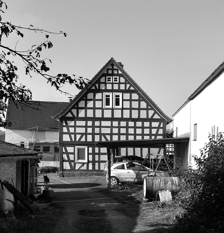 Die große, von der Straße zurückgesetzte Hofanlage bewahrt im Kern einen schindelverkleideten Einhof des beginnenden 19. Jahrhunderts mit einem kräftig ausgebildeten konstruktiven Fachwerkgefüge, das an der nordöstlichen Giebelseite des Wohnteils freiliegt. Charakteristisch ist die dichte Stellung der Wandständer, ihre doppelte Verriegelung und die zu den Eckständern geneigten Streben sowie kurze schräge Stiele unter einigen Fenstern. Kulturdenkmal aus geschichtlichen Gründen.