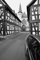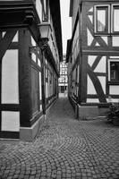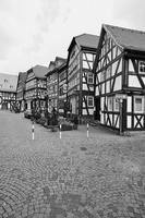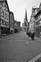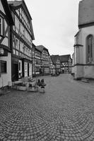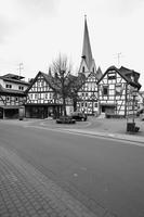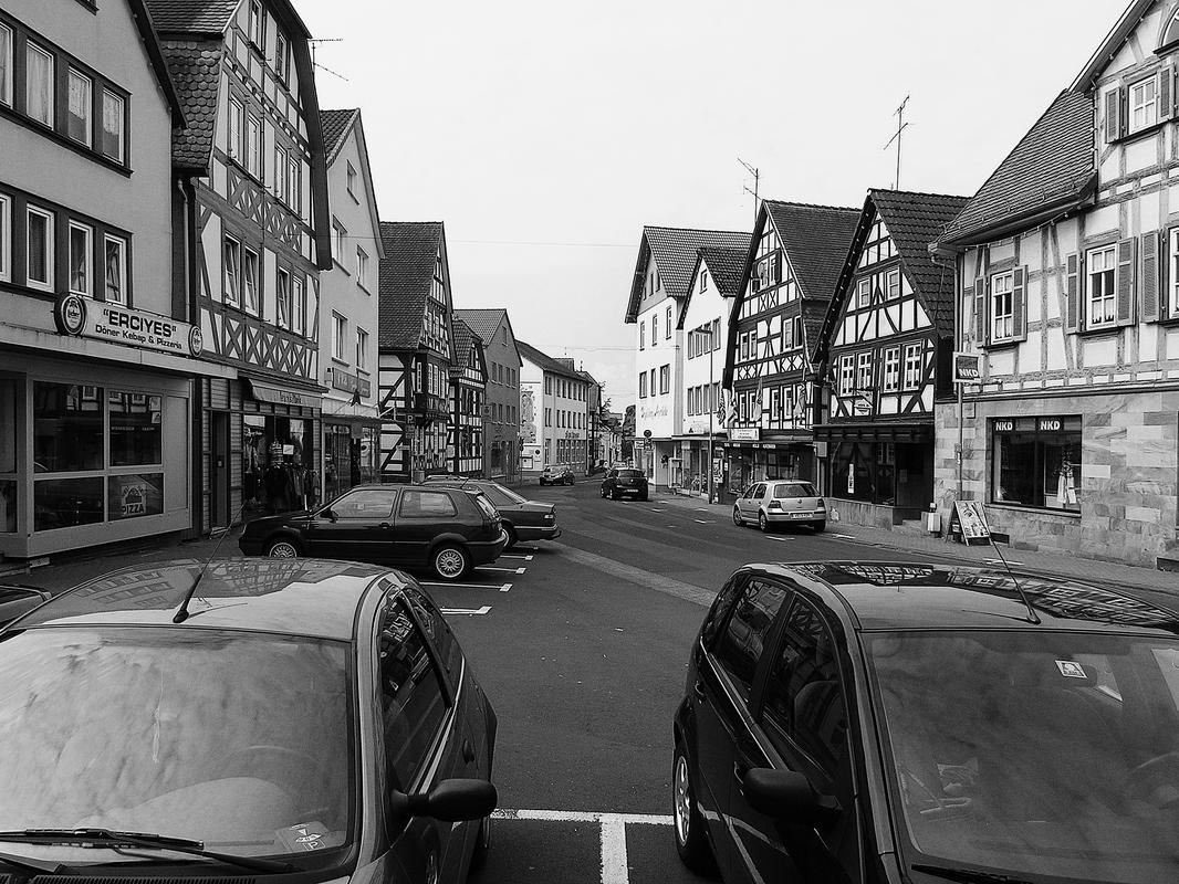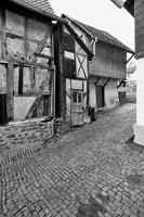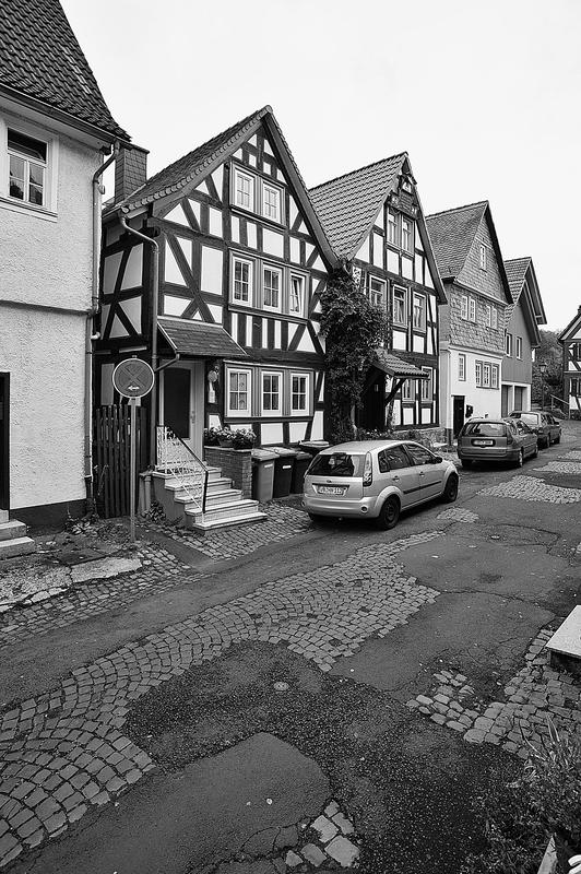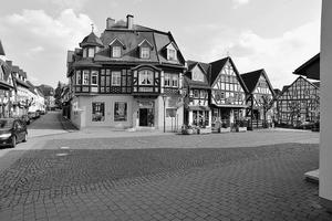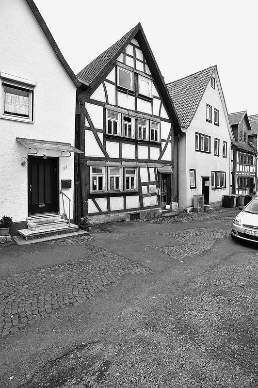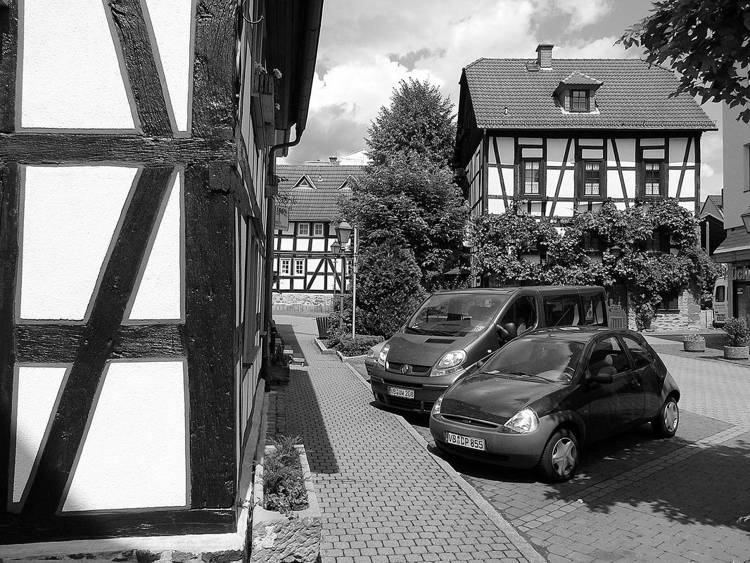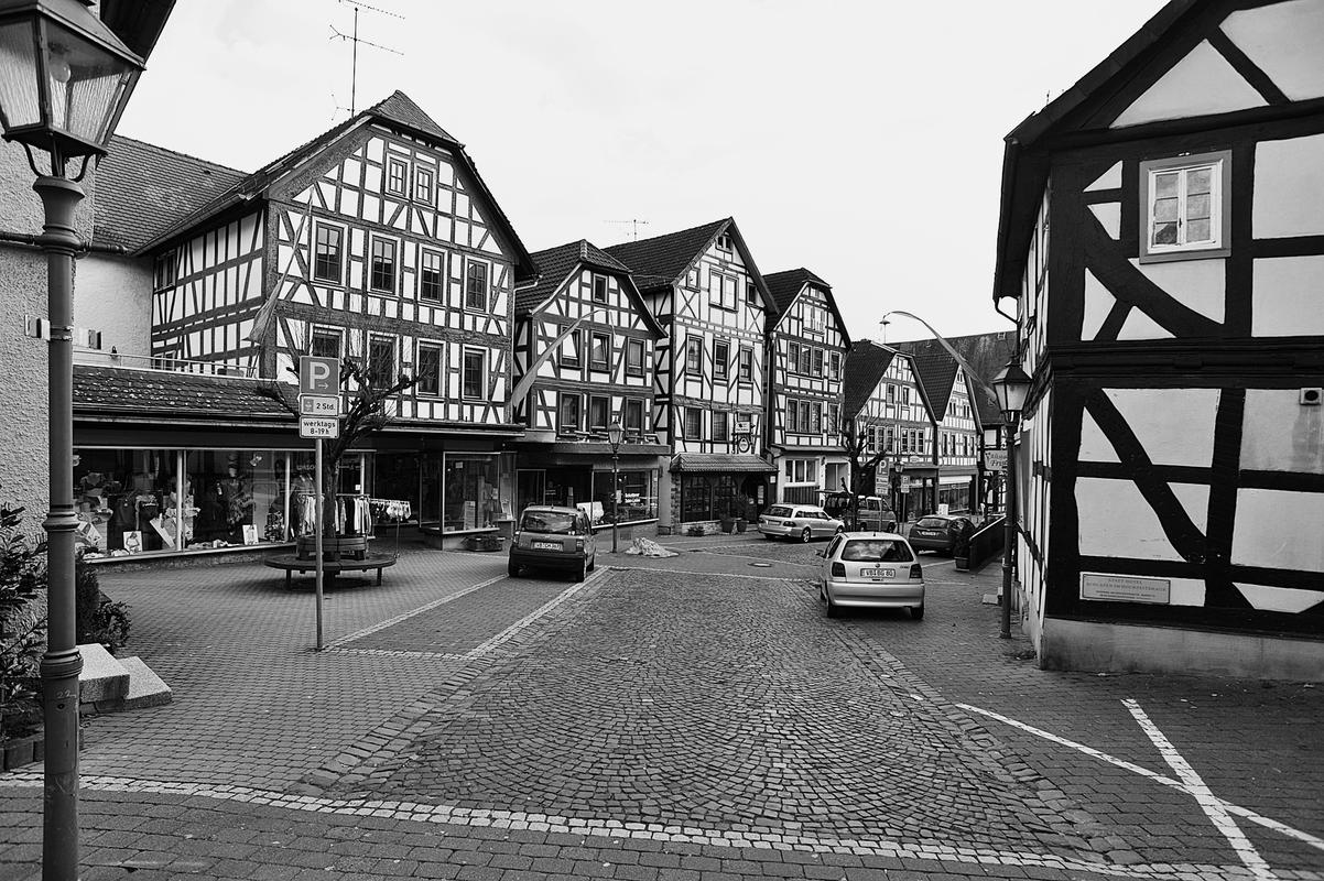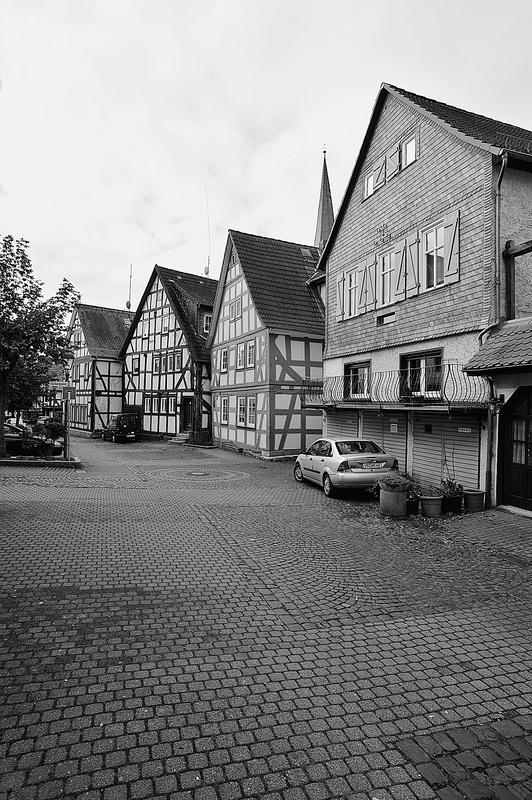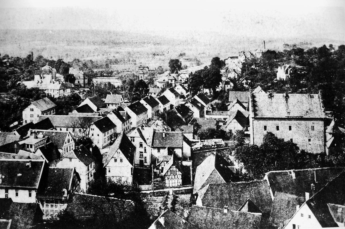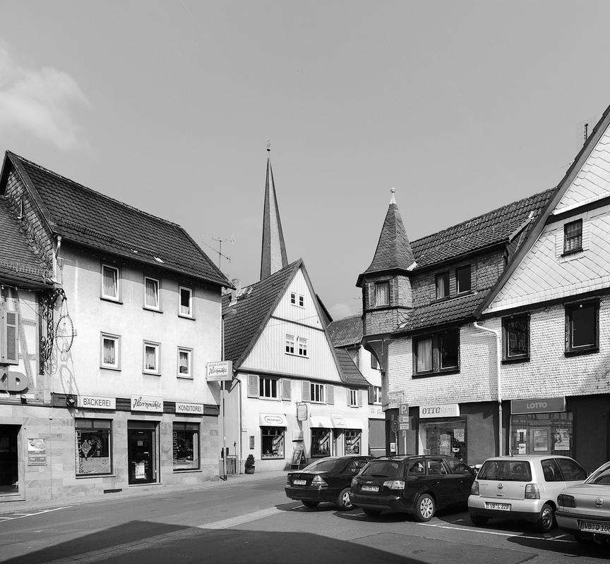 Die Gesamtanlage Altstadt Schotten umfasst den Bereich der im späten Mittelalter zumindest teilweise befestigten Stadt mit den Vorstädten, die sich bis in das 19. Jahrhundert entwickelt hatten. Der mittelalterliche Kern definiert sich durch die Stadtkirche in der Mitte, das Schloss im Südwesten und die Altenburg im Osten. "Schloss" und "Burg", beide ursprünglich von Wasser umgeben, liegen in typischer Weise entfernt von den Durchgangsstraßen und den früheren Toren. Nördlich des Schlosses hat sich um den Schlossplatz ein kleiner Bezirk mit Verwaltungsbauten entwickelt, den alten Schlossgarten besetzte die Oberförsterei (Lohgasse 3). Die ganz abseits gelegene Alteburg, ein wertvoller Fachwerkbau, diente seit dem Beginn der Neuzeit nur noch repräsentativen Wohnzwecken. Um sie herum ist eine Freifläche ausgebildet, die bis zur Nidda reicht und heute als Grünanlage dient. Der Name des diesen Park zur Stadt hin begrenzenden "Freiheitsgässchens" weist wohl auf alte Rechtsverhältnisse hin. Der Verlauf der nach der Zerstörung Schottens 1382 wohl nie mehr vollständig aufgeführten Stadtbefestigung wird in seiner Gesamtheit weder im Plan noch im Straßenbild sehr deutlich. Lediglich der Gewannname "Haingärten" am Neuen Weg (Hain, Hagen im Sinne von Hecke, natürlichem Zaun zum Schutz einer Ortschaft) weist auf die frühere Befestigung hin, und hier im Bereich des Schanzenwegs sowie südwestlich anschließend meint man auch, die Spur eines ehemaligen Mauerverlaufs erkennen zu können. An die Positionen der früheren beiden Haupttore erinnern am ehesten noch Straßenengpässe. Zwischen Vogelsbergstraße 69 und Vogelsbergstraße 100, wo sich das Untertor etwa befand, wurde jedoch in jüngerer Zeit eine Straßenver-breiterung vorgenommen. Von hoher Bedeutung blieben hier die Fachwerkbauten Vogelsbergstraße 98 und 100, die den eigentlichen Stadtkern einleiten. Das 1835 abgebrochene Obertor stand im Bereich vor Marktstraße 21. Ein weiterer, nach Nordosten gerichteter Stadtausgang ungefähr an der Einmündung der Ludwigstraße in die Vogelsbergstraße scheint nicht stärker bewehrt gewesen zu sein. Er gewann spätestens mit der Anlage eines Friedhofs vor der Stadt (an der Stelle Vogelsbergstraße 158, wohl im 16. Jahrhundert) seine Bedeutung. Der in das Mittelalter zurückreichende Stadtgrundriss besteht aus einem unregelmäßigen, angedeutet leiterförmigen Straßenraster mit Kirchstraße/Marktstraße und heutiger Vogelsbergstraße als Hauptachsen und dazwischen mehreren Neben- und Verbindungsgassen, von denen eine das bemerkenswerte Südportal im Westbau der Stadtkirche motiviert hat. Einige der Gassen, etwa die zwischen Marktstraße 5 und 7, sind nur für Fußgänger nutzbar und und bilden bedeutende Dokumente städtischen Lebens. Auch das Rathaus als bürgerlicher Mittelpunkt der Stadt ist an einer Verbindung zwischen beiden "Hauptstraßen" errichtet. Es stellt gleichzeitig, zusammen mit der Alteburg, das augenscheinlich älteste Fachwerkgebäude der Stadt dar. Nur in bescheidenem Maß bildeten sich Plätze aus. Dazu gehört zum einen die sogenannte Platte. Sie nimmt den Raum südwestlich der Stadtkirche bis hin zum alten Pfarrhaus (Kirchstraße 34) ein und umfasste ehemals wohl einen Friedhof um die frühe Michaelskirche oder -kapelle, deren tatsächlicher Standort freilich umstritten ist. An diesem Platz steht auch das Gebäude der einstigen Lateinschule (Kirchstraße 36). Zum anderen schließt sich in eigentümlicher Weise nach Nordosten an den Chor der Liebfrauenkirche der Marktplatz (beziehungsweise die Marktstraße) an. Besonders hier sowie östlich, südlich und auch nördlich der Kirche reihen sich giebelständige Bürgerhäuser wirkungsvoll aneinander. Auch die heutige Vogelsbergstraße verbreitert sich innerhalb des ehemaligen Untertors platzartig; von hier aus führt der Weg zur Altenburg. Die dem Schlossplatz nach Norden folgende Straßenverbreiterung vor Schlossgasse 10 wurde zumindest in der Zeit um 1900 als "Kleiner Marktplatz" bezeichnet; im Norden der Altstadt ist oberhalb des früheren Mühlhofs am Eintritt des Mühlgrabens in die Stadt der Ludwigsplatz ausgebildet. Einige Häuser, die diesen umgeben, stammen aus dem 17. und 18. Jahrhundert, hervorzuheben sind außer Ludwigstraße 33 die nebeneinander stehenden Typenhäuser Ludwigstraße 16/18 und 20. Mehrfach sind in der inneren Stadt hinter den Straßen und an kurzen Sackgassen größere Höfe beziehungsweise Wirtschaftsgebäude angelegt (Altenburg 6/8/10/12, hinter Kirchgasse 27/29, um Marktstraße 20, 28A, 37, 41, Vogelsbergstraße 99/101, ehemals auch Vogelsbergstraße 113). Hier bilden insbesondere noch Scheunen wirtschaftsgeschichtliche Zeugnisse. Grundrissprägend war weiterhin der die Stadt in ihrer ganzen Länge durchfließende Mühlgraben; sein Verlauf ist noch abschnittweise vor allem südlich der Stadtkirche zwischen Kirch- und Vogelsbergstraße erkennbar. Oberhalb der Stadt (bis zur ehemaligen Wagnersmühle, Kleine Mühlgasse 18) läuft er noch offen. Im als Gesamtanlage ausgewiesenen Bereich der Stadt lassen sich außer dem genannten Schlossplatz als landesherrlichem Verwaltungsmittelpunkt Wohnbezirke unterschiedlicher sozialer Gruppen erkennen. Gleichsam großbürgerliches Bauen mit nicht selten dreigeschossigen und zumeist giebelständigen Fachwerkhäusern des 17. bis 19. Jahrhunderts prägt noch immer den zentralen Bereich der Stadt: außer der unteren Marktstraße und dem südlichen Teil des Kirchplatzes auch den unteren Abschnitt der Vogelsbergstraße. Die gehobene bürgerliche Architektur markiert so noch deutlich den durch die Stadt führenden historischen Straßenzug. Eher kleinbürgerlich-handwerklich geprägt sind in der unteren Stadt die Umfelder der beiden Äste der Schlossgasse (mit interessanten Blickbezügen zu den Turmaufbauten der Liebfrauenkirche) und der planmäßig ein Rechteck umfassenden Neu- und Petersiliengasse. Die beiden letzteren sind wesentlich nach einem Stadtbrand 1670 ne