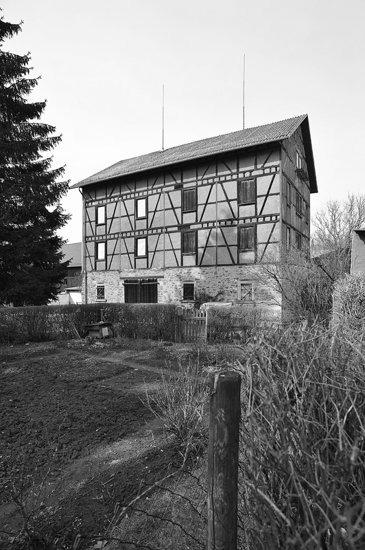 Das ehemalige Lagergebäude eines Landhandels ist wohl erst nach 1930 entstanden, dabei dennoch von seiner Architektur wie von seiner Aufgabe her charakteristisch und bedeutsam für den aus großen Hofanlagen bestehenden südlichen Abschnitt der Altstadt. Zweieinhalb Fachwerkgeschosse steigen über steinernem Sockelgeschoss auf; das aus dünnen Hölzern bestehende Gefüge ist sehr regelmäßig gegliedert und weist hohe, axial angeordnete Öffnungen auf. Das späte und große Beispiel einer quasi ackerbürgerlichen Scheunen- oder Einlagerungsarchitektur hat am Rand der Altstadt auch eine ganz wesentliche städtebauliche Funktion.