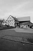Das zwischen der Lauterbacher Straße und der Zufahrt zur Großmühle platzierte Anwesen besteht im Kern aus einem kleinen Einhof, der von der Straße abgewandt ist: Hinweis darauf, dass die Straße nach Lauterbach hier ursprünglich unmittelbar am Mühlgraben entlang verlief. Das Fachwerk zeigt an der Hofseite ein altertümlich anmutendes Gefüge mit gebogenen Geschossstreben und einfacher Verriegelung; die Geschosstrennung ist gekennzeichnet durch gerundete Füllhölzer und ein Stabprofil an der Stockschwelle, so dass das frühe 18. Jahrhundert als Entstehungszeit in Frage kommt (ein Balken soll mit 1689 datiert gewesen sein). Der hohe, ursprünglich als Stall genutzte Sockel aus Bruchstein hat eine Eckquaderung. Das Anwesen wurde im mittleren 19. Jahrhundert erweitert und teilweise erneuert, gleichzeitig oder wenig später erfolgte der Ausbau zum Winkelhof.