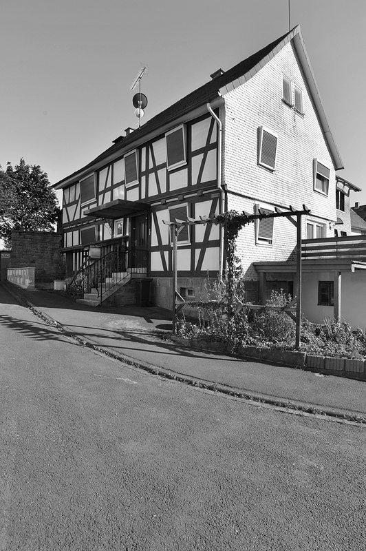Das drei Zonen breite Fachwerkhaus ist über einem Sockel aus Sandsteinquadern unmittelbar rechts vor dem westlichen Zugang zum Kirchhof errichtet, wo ihm eine hervorgehobene städtebauliche Bedeutung zukommt. Das Gefüge, gekennzeichnet durch einfache Verriegelung sowie geschosshohe, zu Eck- be-ziehungsweise Bundständern geneigte Streben, weist in das mittlere oder späte 19. Jahrhundert, jedoch lässt das Quergebälk mit Vorkragung und Rundstabprofil an der Stockschwelle einen deutlich älteren Baukern vermuten.