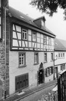 Zweigeschossiger, traufständiger Massivbau mit Sandsteingewänden, der Fachwerkaufbau später. Erschliessung über spätgotisches Schulterbogenportal mit umlaufendem Wulst. Hofseitig in den beiden massiven Geschossen verschiedene spätmittelalterliche Fensterformen.