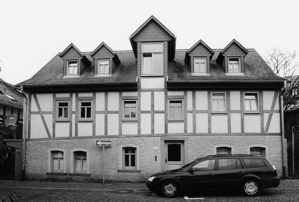 Zweigeschossiger, traufständiger Wohnbau aus dem 19. Jahrhundert mit massiven Erdgeschoss, Fachwerkobergeschoss und zentralem Zwerchhaus. Die in unterschiedlicher Höhe sitzenden Fenster in beiden Geschossen deuten auf einen späteren Umbau hin. Im Erdgeschoss fünf Stichbogenfenster in Sandsteingewänden, das Fachwerk im Obergeschoss größtenteils erneuert.