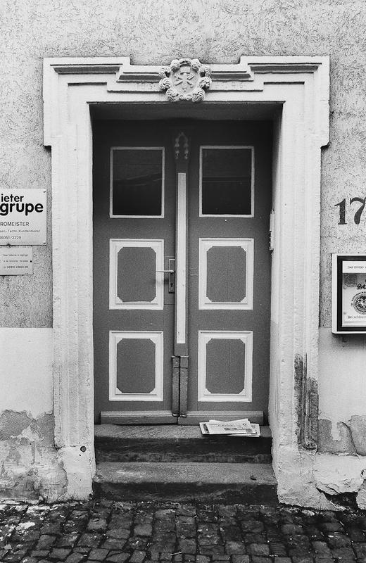 Dreigeschossiges, giebelständiges Barockhaus im Türsturz auf 1746 datiert. Über dem dreiachsigen, massiven Erdgeschoss zwei vierachsige, verputzte Fachwerkobergeschosse, im breiten Giebel des aufgeschobenen Krüppelwalmdaches zwei Fenster. Im Erdgeschoss zwei große Ladenfenster und eine zentrale Haustür mit breiten, geohrten Sandsteingewänden. Die Fenster vermutlich im Historismus der Haustür angepasst. Im Türgewände als Schlussstein eine Wappenkartusche mit Datierung. Die inzwischen durch einen Lichtausschnitt veränderte barocke Füllungstür mit Kassetten und Pilaster als Anschlagleiste dürfte in die Erbauungszeit datieren. Das erste Obergeschoss mit seinen großen zweiflügeligen Sprossenfenstern zählt noch zum Originalbestand. Das zweite Obergeschoss und das Krüppelwalmdach mit Zahnschnittleiste unter dem Ortgang weisen in das frühe 19. Jahrhundert.