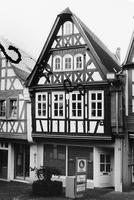 Giebelständiges vierachsiges Fachwerkhaus aus der Mitte des 18. Jahrhunderts zwischen Brandmauern mit profilierten Konsolen, datiert SSD 1536. Im ersten Obergeschoss schlichtes Fachwerk mit Doppelständern zwischen den Fensterachsen, im Giebel des hohen Satteldachs mit kleinem Krüppelwalm Reihungen von Andreaskreuzen in den Brüstungszonen. Die stichbogigen, gereihten kleinen Fenster und die im Verhältnis zum Hauptgeschoss reiche Dekoration lässt auf einen Dachneubau im Historismus schliessen. Das Haus wurde 1953 und 1990 saniert.