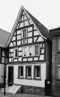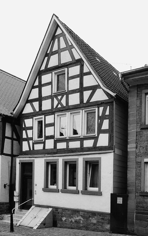 Giebelständiges, zweigeschossiges Wohnhaus unter hohem Satteldach mit leichtem Aufschiebling. Fachwerk ursprünglich aus dem 18. Jahrhundert, im Laufe von Renovierungen zum Teil stark ergänzt. Massives Erdgeschoss und Sockel im späten 19. Jahrhundert verändert. Kellererschliessung über liegenden Kellerhals von der Straße aus.