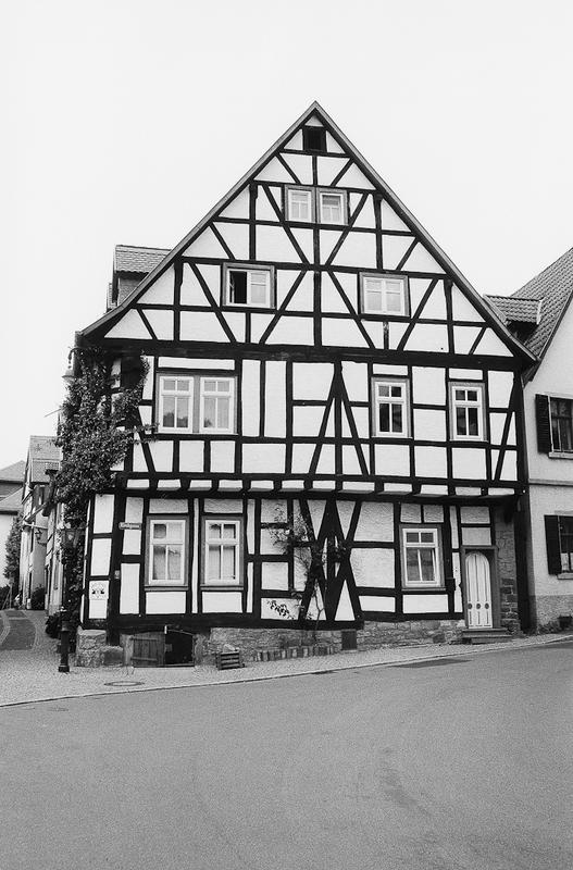 In Ecklage zur Töpfergasse großes, zweigeschossiges Fachwerkhaus aus unterschiedlichen Zeiten. Erdgeschoss mit en hohen V-Streben evtl. noch 16. Jahrhundert, Obergeschoss nach dem Dreißigjährigen Krieg, Dach frühes 19. Jahrhundert. Die westliche Giebelwand steht auf einer alten Bruchsteinmauer mit Eckquaderung. Schlichtes Fachwerkgefüge in dünnen Hölzern, an den Bundständern und im Giebel hohe Diagonalstreben. Ecke des Hauses wegen des Durchgangsverkehrs abgeschrägt, im älteren Sandsteinsockel eine Bittplatte zum Hl. Veit eingelassen, damit er die Wagen der durchfahrenden Kaufleute in dieser engen Gasse nicht umfallen lassen möge.