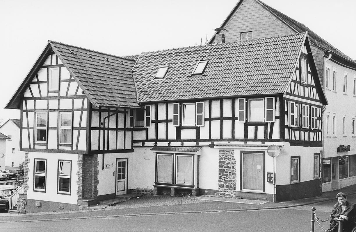 Giebelständiger, zweigeschossiger Fachwerkbau auf massivem Erdgeschoss aus dem 18. Jahrhundert durch einen Vorbau modern erweitert. Dreiachsige Fassade, schlichte Fachwerkformen mit Diagonalstreben und Doppelständern. Satteldach mit Aufschiebling.