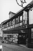 Aus zwei ehemals giebelständigen, schmalen Häusern aus dem 18. Jahrhundert zusammengebautes, traufständiges Gebäude. Über modern ausgehöhltem Erdgeschoss der südliche Hausteil mit drei gekuppelten Fenstern und gebogenen Diagonalstreben an den Eckständern. Nördlicher Hausteil mit Doppelständern und kurzen senkrechten Streben in den Brüstungen. Satteldach mit Aufschiebling, in der Mittelachse kleine Ladeluke.
