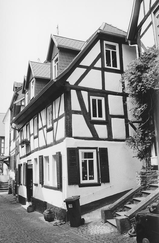 Zweigeschossiges, traufständiges Wohnhaus im Sturz datiert "anno 1783“. Erdgeschoss verputzt, westliche Achse Fachwerk, östlicher Bereich massiv, evtl. ehemaliger Stallbereich. Vierachsiges Obergeschoss in dünnem, sparsam verriegeltem Fachwerk mit hohem Diagonalstreben. Erschliessung über zweiflügelige, klassizistische Haustür in geschnitztem Futter, darüber Oberlicht im Mauerwerk.