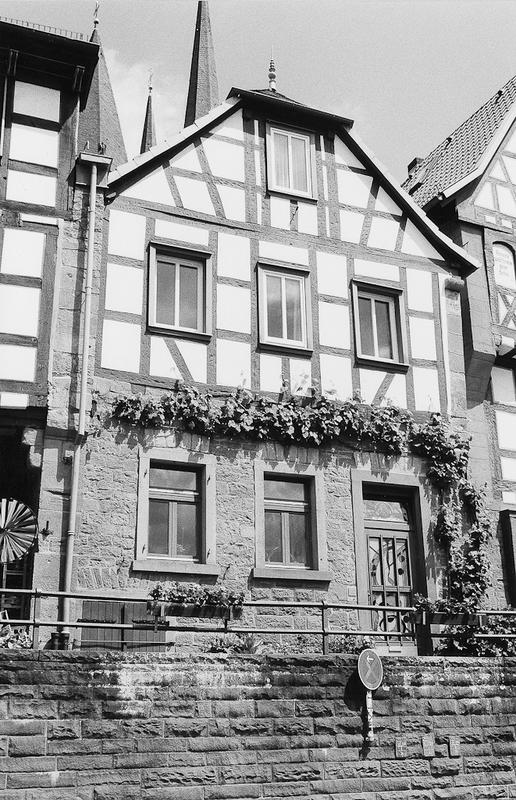 Zweigeschossiges, giebelständiges Wohnhaus aus dem 18. Jahrhundert zwischen gotischen Brandmauern. Durch den Rücksprung des Nachbarhauses in der Traufwand vier große Konsolsteine im Erdgeschoss und ein spätgotisches Vorhangfenster in Höhe des ersten Obergeschosses sichtbar. Fassade im Erdgeschoss in Sandsteinquadern im 19. Jahrhundert vorgesetzt, das erste Obergeschoss ehemals stark vorkragend, evtl. auf schmaler offener Halle abgelastet. Krüppelwalmdach mit Aufschiebling und Firstzier, altes Kellergewölbe mit Eingang in der westlichen Seitenachse.