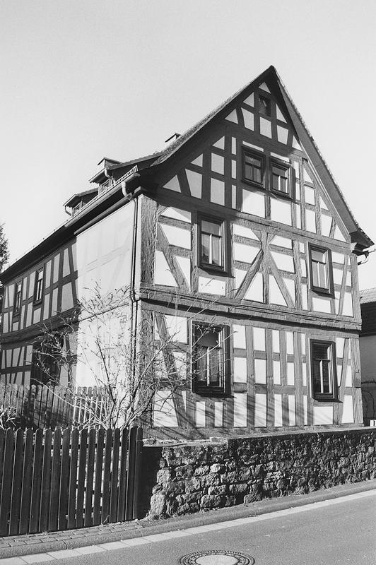Evangelisches Gemeindehaus erbaut ab 1715, bis 1919 Pfarrhaus. Zweigeschossiges, giebelständiges Wohnhaus in kräftigem Sichtfachwerk mit Vorform der Mannfiguren an den Bund- und Eckständern im Obergeschoss und profiliertem Schwellenkranz, Satteldach mit Aufschiebling. Dreizoniger, zweischiffiger Aufbau, in der östlichen Außenachse zwei gekuppelte Fenster, dazwischen eine Doppelstütze, Erschliessung traufseitig.