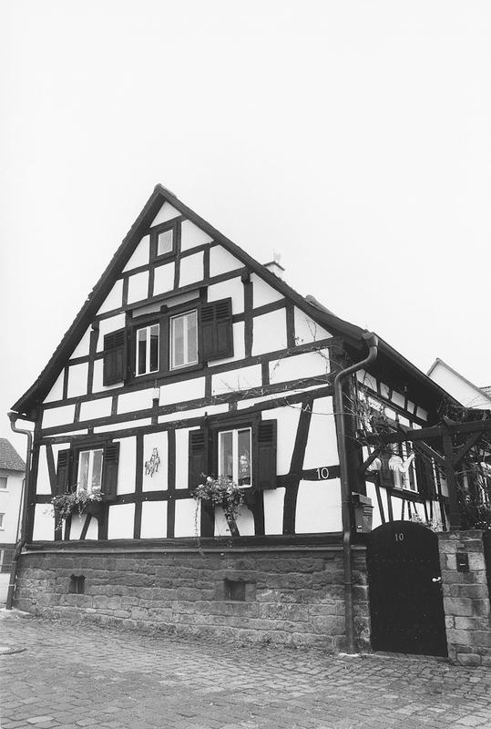 In Ecklage eingeschossiges, giebelständiges Wohnhaus aus der zweiten Hälfte des 19. Jahrhunderts in schlichtem Fachwerk auf Sandsteinsockel, Satteldach mit Drempel und Aufschiebling, Fenster mit Klappläden zu verschliessen. Hauszugang hofseitig über zweiläufige Treppe in Sandstein. Einfriedung mit Holzzaun zwischen Pfosten auf einer halbhohen Sandsteinmauer.