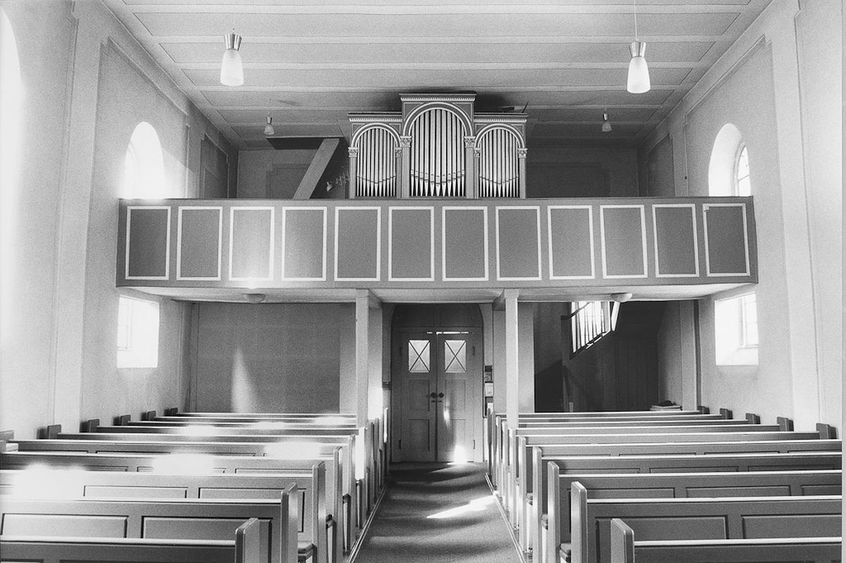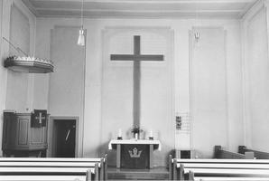 Die Traufseiten des Schiffes in vertikaler und horizontaler Lisenengliederung mit schlanken Rundbogenfenstern in schräg eingeschnittenen Laibungen. Den neugotischen, durch Holzsprossen zart gegliederten Lanzettfenstern innen zusätzlich hölzernes Maßwerk mit Dreipässen vorgesetzt. Im Innern Emporeneinbau.