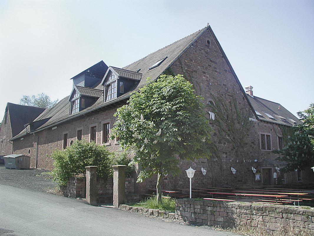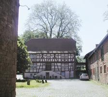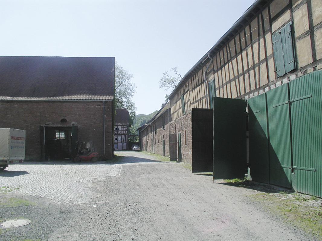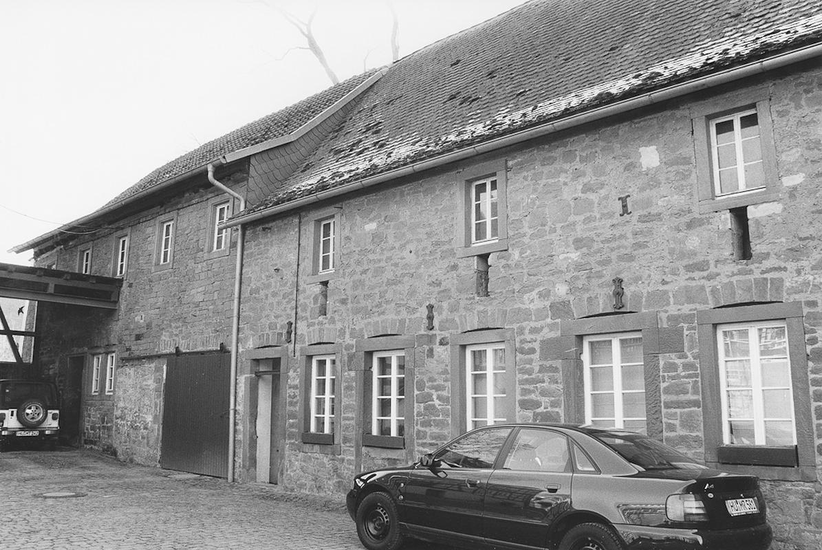 Östlich eingeschossige Stallscheune in Sandsteinquadern mit Eckquaderung und Okuli, im Hof mittig dazu rechtwinklig angebaute Scheune mit hohem Satteldach, am Giebel halber Okulus. Hofseitig große Tore mit Segmentbögen und Industriefensten des 19. Jahrhunderts mit feinen Eisenprofilen. Im vorderen Teil 1840/42 Einbau neuer, hochrechteckiger Türen und Fenster in Sandsteingewänden, als südlicher Hofabschluss winkelförmig angesetztes Wohngebäude aus Sandsteinquadern mit gekuppelten Fenstern in Sandsteingewänden und Tor zwischen Torpfosten mit profilierter Abdeckplatte ebenfalls aus dem 19. Jahrhundert.